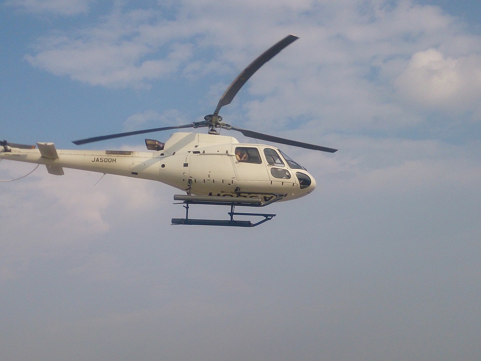 お客さんを乗せて出発するヘリコプター、カッコイイ!!。
