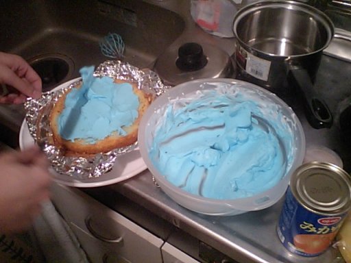 好みの硬さまで混ぜたら、今度はケーキにぬりったくります。