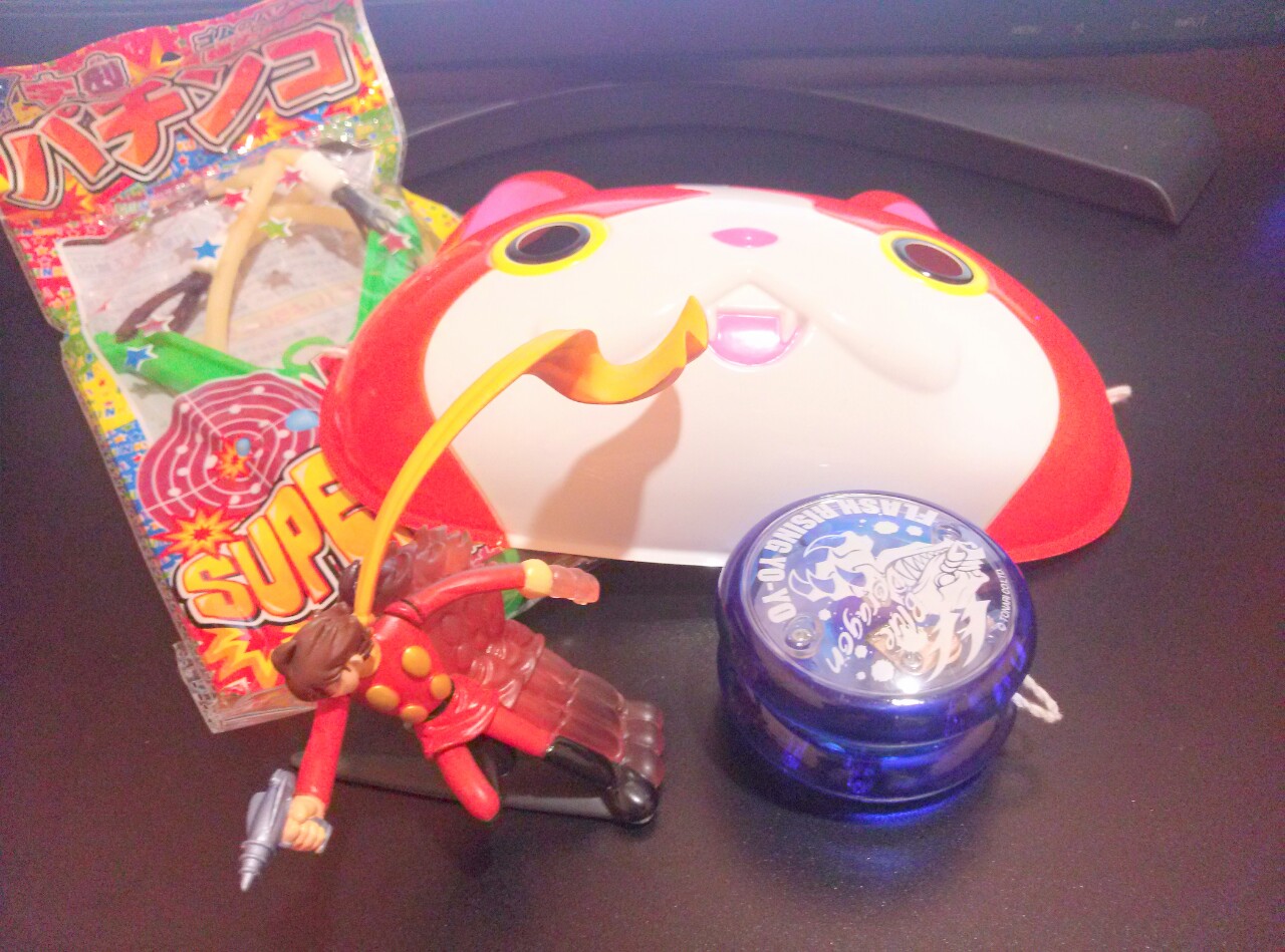 (出店での戦利品たち ……しかしいくらなんでもお面1,000円は高いよな)