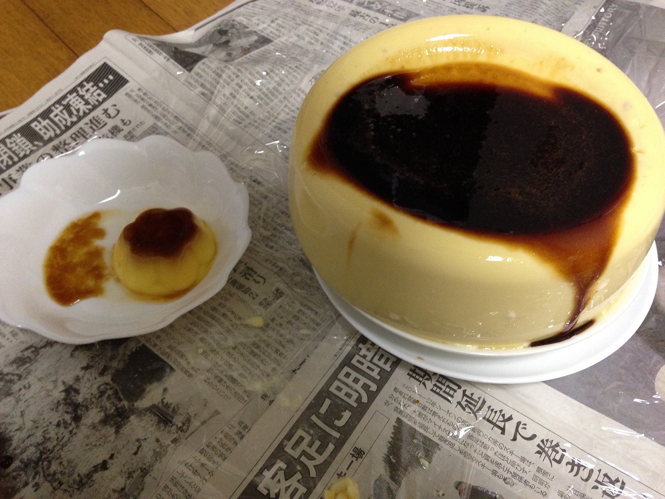 バケツからプリンをだすときに皿のサイズが小さいと溢れ出します。