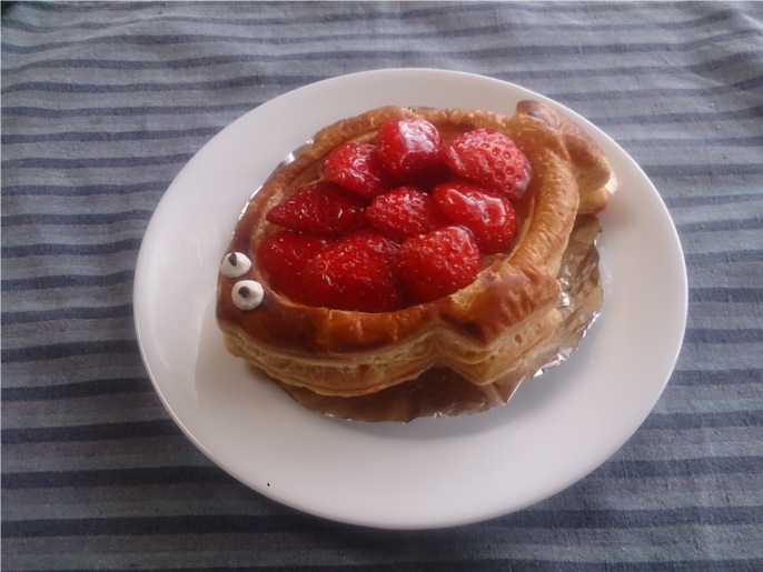 美味しそうです、苺が乗っていて周りのパイもサックサクで実際美味しかったです。