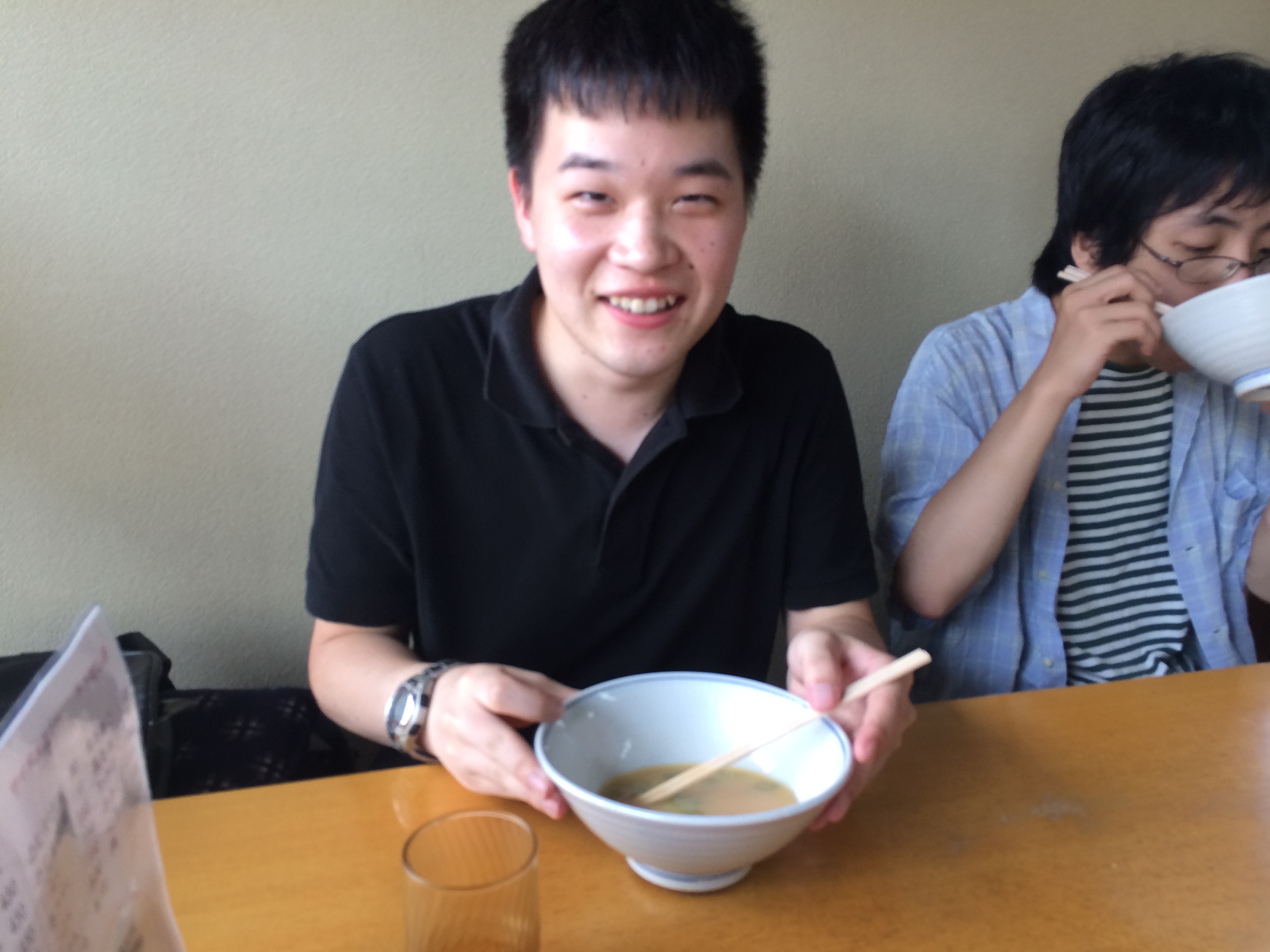 ※満面の笑みでうどんのだしを残すGESリーダ前田氏