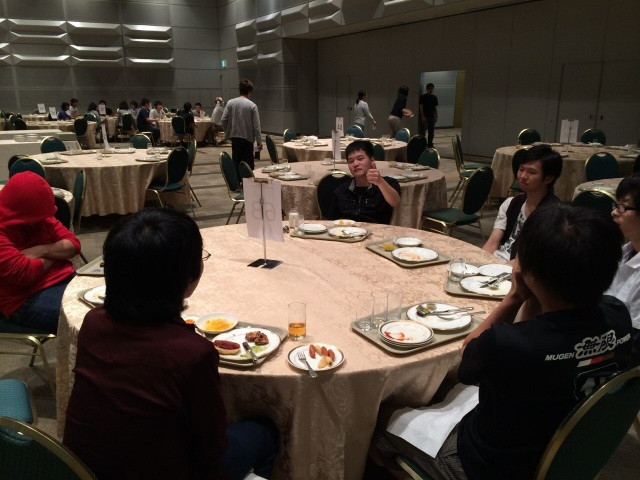 二日目の朝食バイキングは皆疲れ果てていました。