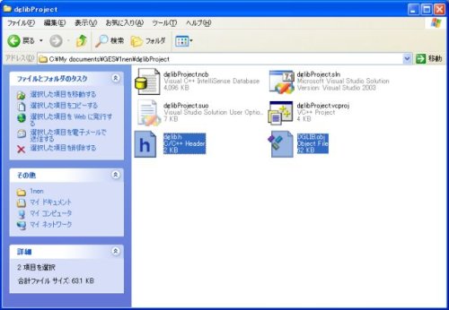 さて、今度はプロジェクトのフォルダに「dglib.obj」と「dglib.h」をコピーします