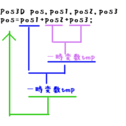 pos=pos1+pos2; // オペレーター「+」の呼び出し