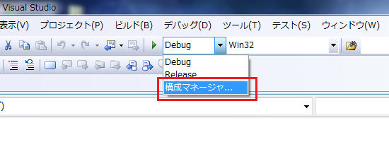 開いたら、構成のところがデフォルトでさっき作ったのになってると思いますが、なってなかったら変更