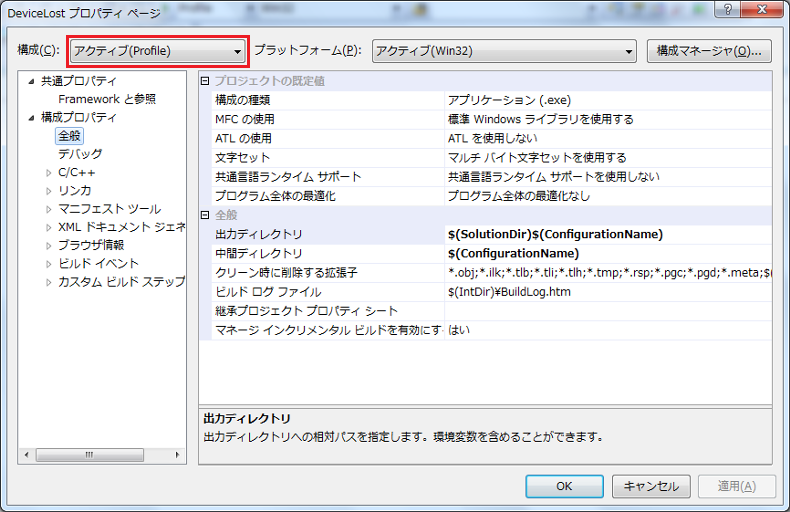 次に、リンカの全般の出力ファイルを変更したいと思います
