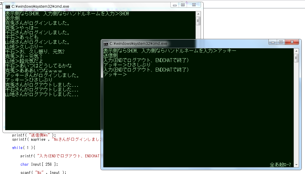 メモリマップドファイルのプロセス間通信を利用した、一人チャットを作りました。