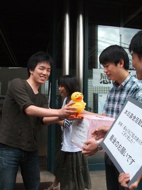 先週、日本語学科の留学生による四川省地震の募金が行われていたので、ゲーム学科も募金してきました!