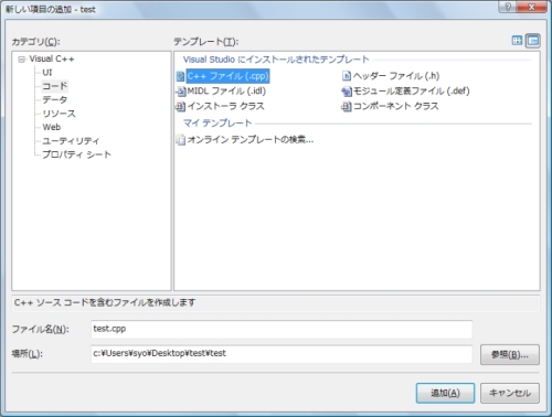 画像が「test.cpp」になっていますが、コレでも問題はありません。