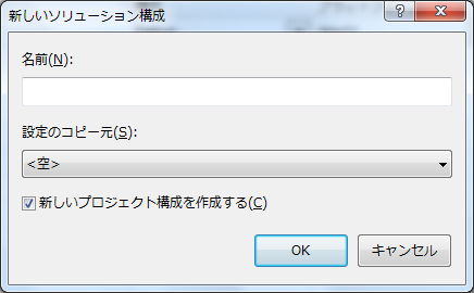 そしたら、こんなウィンドウがでるので、[アクティブソリューションの構成]の[新規作成]を選びます