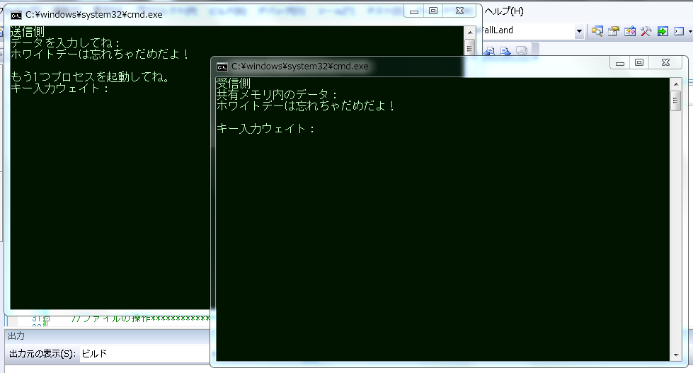 もうちょい凝ったプロセス間通信のソースも、後々アップするかもしれません。